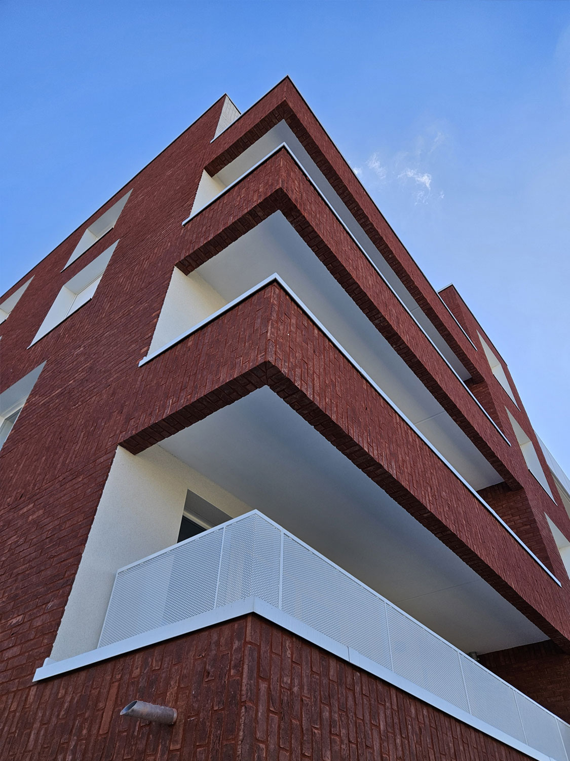 L’identité des bâtiments repose sur une architecture en brique caractéristique, qui renforce leur ancrage dans le paysage local. Ce choix matérialise la volonté de s’inscrire dans une continuité avec le patrimoine architectural environnant, tout en apportant une touche contemporaine grâce à une mise en œuvre soignée.